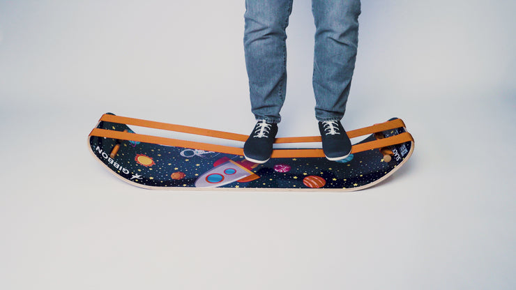 Gibbon Astro SlackBoard plus Astronaut SlackBoard with GIBBON branding on a white background Astro SlackBoard with text highlighting features on a white background Astronaut SlackBoard with customizable features and dimensions on a white background Person stepping onto an astro slackboard plus on grass Child using an Astro slackboard plus in a modern kitchen Child playing with an Astro slackboard plus in a living room Child jumping off of a unicorn slackboard plus in a living room