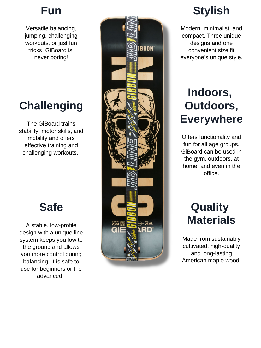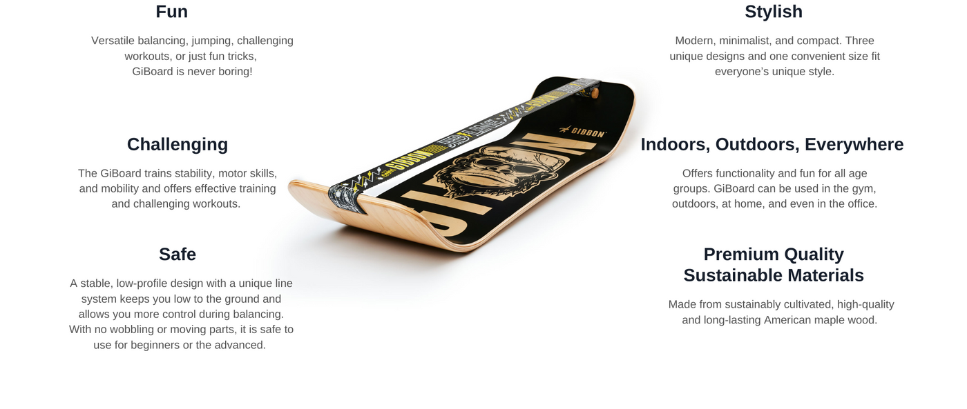 GiBoard Balance Trainer is where fun meets challenges. Demanding tricks, effective workouts, or just fun and games, GiBoard trains stability, motor skills, and mobility. Turn any place into an adventure!