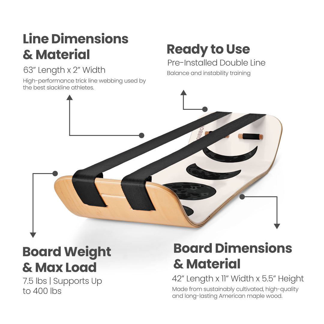 The SlackBoard Plus builds on the original, with the ability to convert between a two-line and a one-line setup - ideal for kids, rehab, beginners, or advanced instability training.